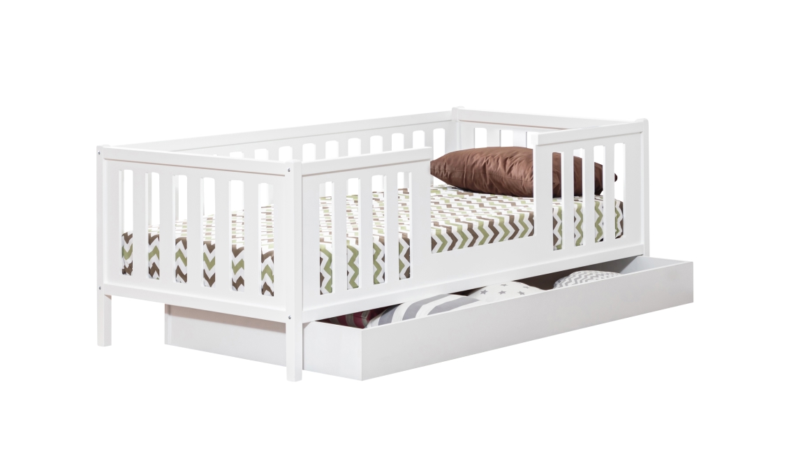Berlin Montessori karyola, modern tasarımı ve yere yakın güvenli yapısıyla çocuklar için konforlu ve düzenli bir uyku alanı sunar.