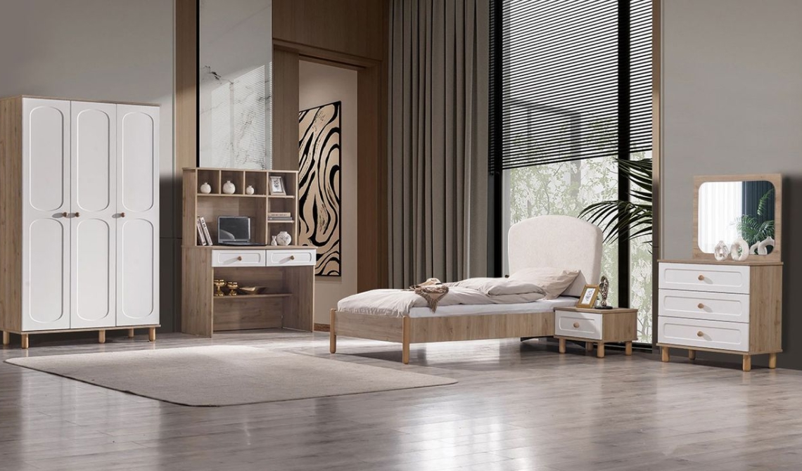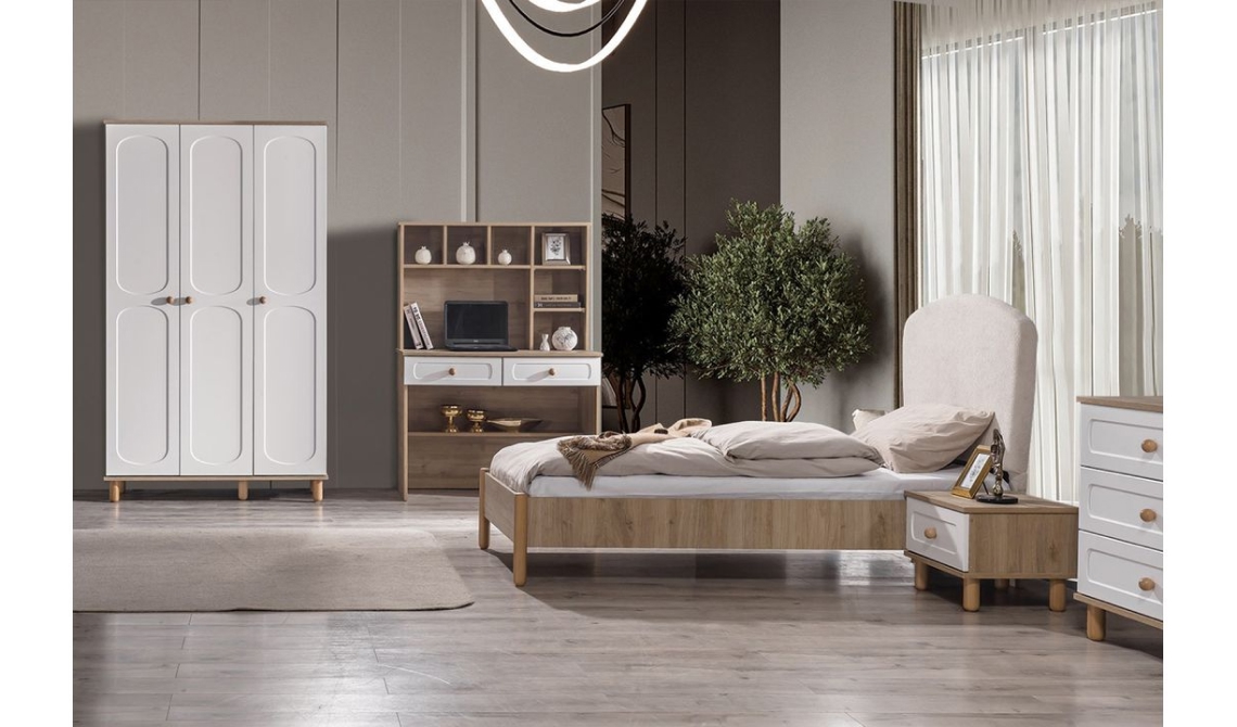 Bohem 3 kapılı genç odası, modern tasarımı ve fonksiyonel mobilya modülleriyle gençler için düzenli, konforlu ve şık bir yaşam alanı sunar.