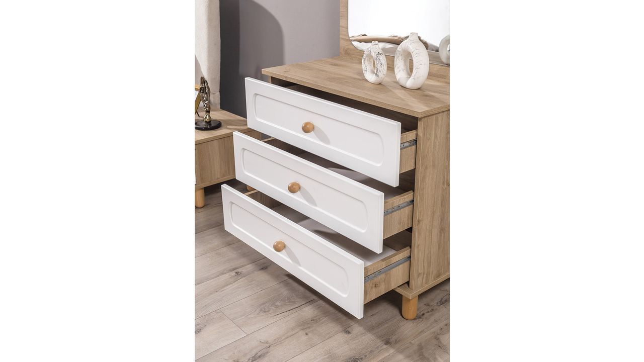 Bohem Şifonyer, geniş çekmeceleri ve zarif tasarımı ile yatak odalarında depolama ihtiyaçlarınızı şık bir şekilde karşılar. Fonksiyonel yapısı günlük kullanım için idealdir.