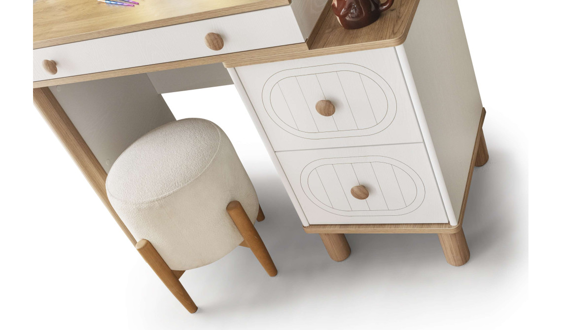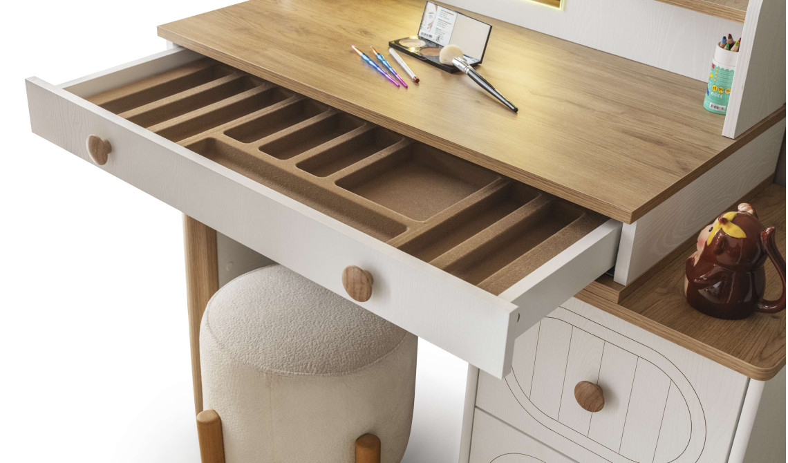 Bohem stilinin zarif ve kişisel dokunuşunu güzellik rutininize taşıyan Bohostayle Makyaj Masası, fonksiyonel çekmeceleri ve geniş yüzeyi ile makyaj malzemeleriniz ve aksesuarlarınız için konforlu bir alan yaratır. Doğal dokuları ve estetik tasarımıyla odanıza romantik ve sanatsal bir hava katarken, güne başlarken size ilham verir.