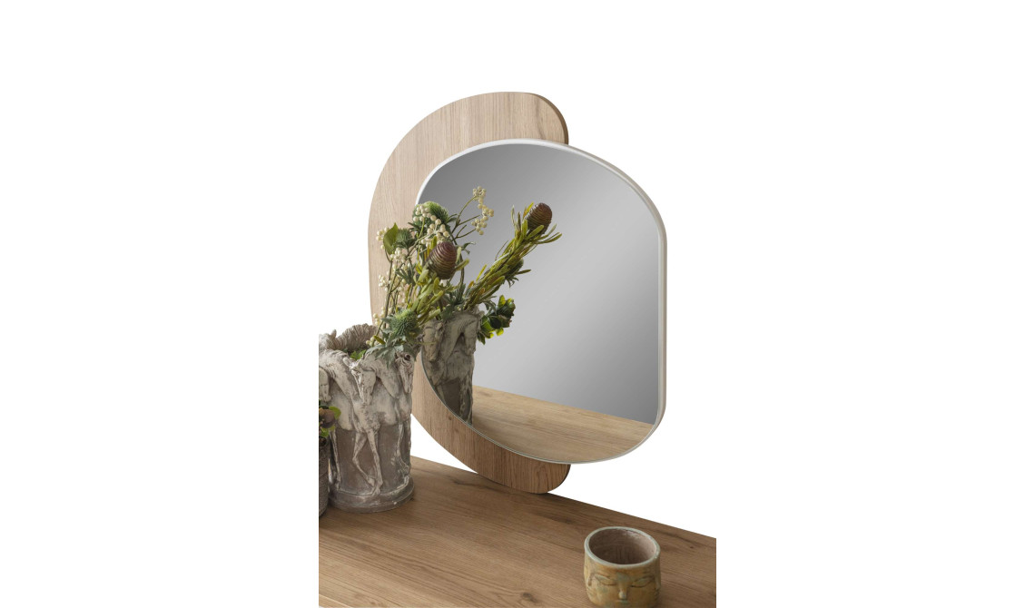 Bohostayle Şifonyer’in şıklığını tamamlayan ve odanıza derinlik katan bu estetik ayna, bohem tarzının doğal ve sanatsal ruhunu yansıtır. Sadece fonksiyonel bir parça olmakla kalmaz, aynı zamanda odanızın dekorasyonunu zenginleştiren zarif bir detay olarak öne çıkar.