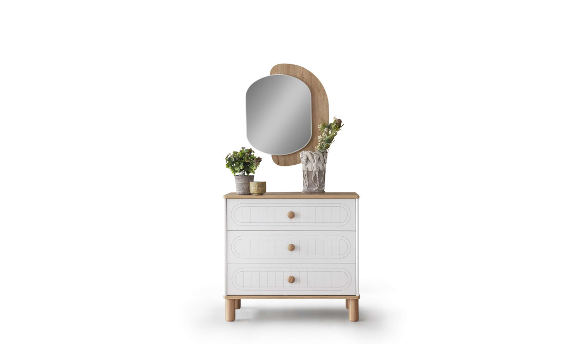 Bohem stilinin özgün ve sıcak atmosferini yatak odanıza taşıyan Bohostayle Şifonyer, geniş çekmeceleriyle eşyalarınız için pratik bir depolama çözümü sunarken, sanatsal tasarımıyla mekanınıza estetik bir değer katar. Doğal dokuları ve zarif detaylarıyla odanızın en dikkat çekici parçalarından biri olmaya aday.