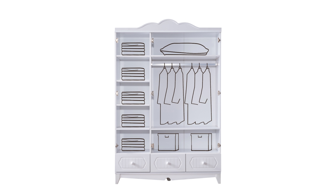 Flower dolap, zarif detayları ve kullanışlı iç düzeniyle odanızda hem şık bir görünüm hem de düzenli depolama alanı sunar.