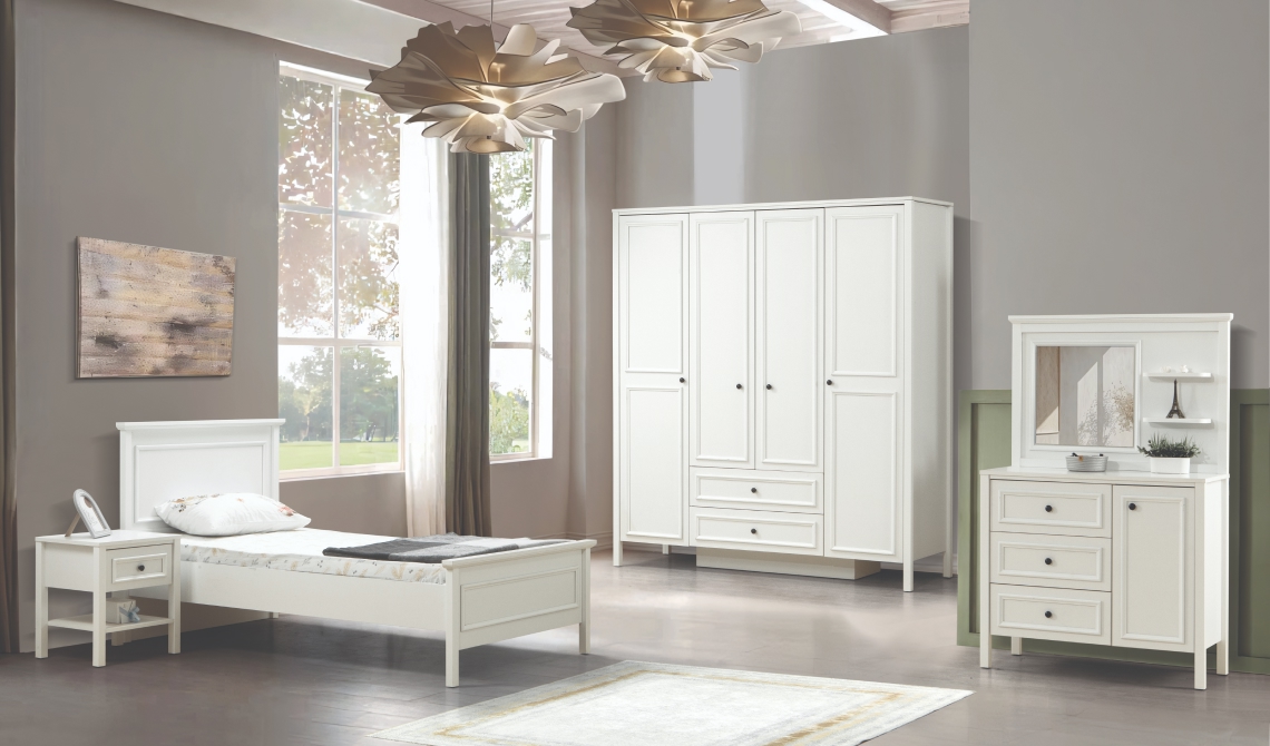 İcon Beyaz 4 Kapılı Dolap, modern beyaz tasarımı ve geniş iç hacmiyle genç odalarında maksimum depolama alanı ve düzenli kullanım sağlar.