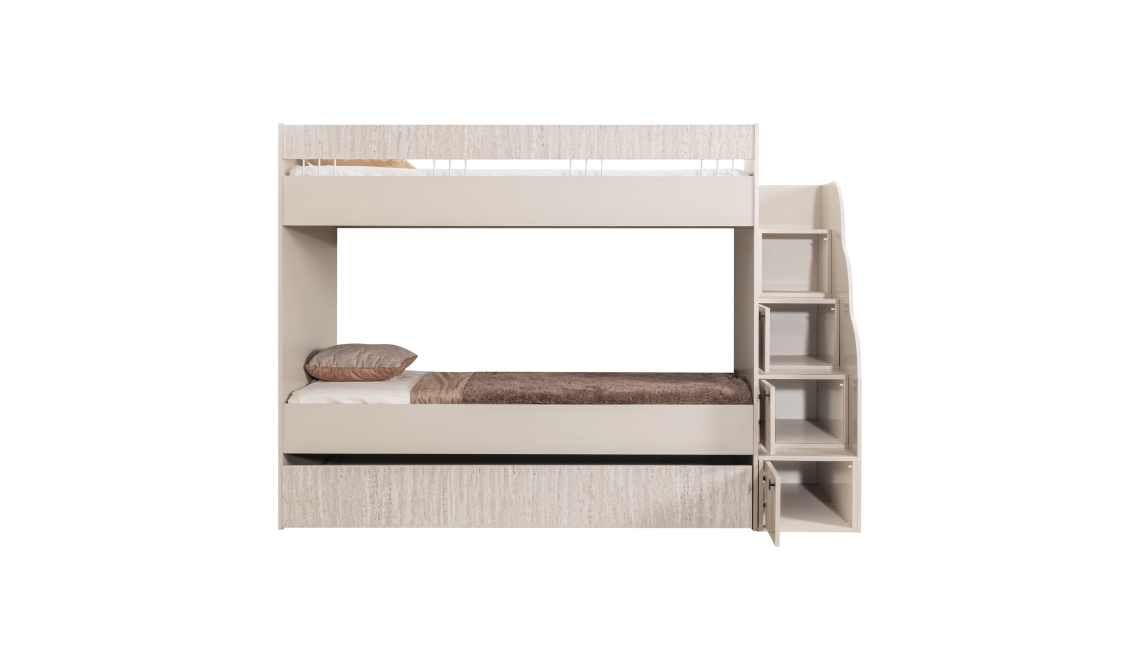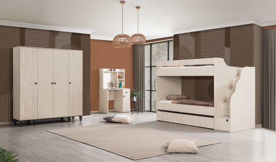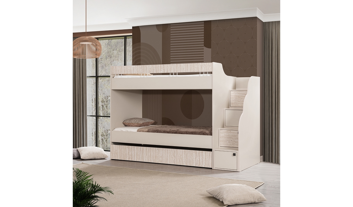 Krem Ranza, yerden tasarruf sağlayan yapısı ve zamansız renk seçimiyle paylaşımlı odalar için ideal bir çözümdür. Krem rengin verdiği sıcaklık sayesinde oda daha aydınlık ve geniş hissedilir. Sağlam yapısı günlük kullanıma uygun olup uzun süreli kullanım sunar. Hem fonksiyonel hem de estetik bir uyku alanı oluşturan Krem Ranza, çocuk ve genç odalarında düzenli ve konforlu bir yaşam alanı sağlar.