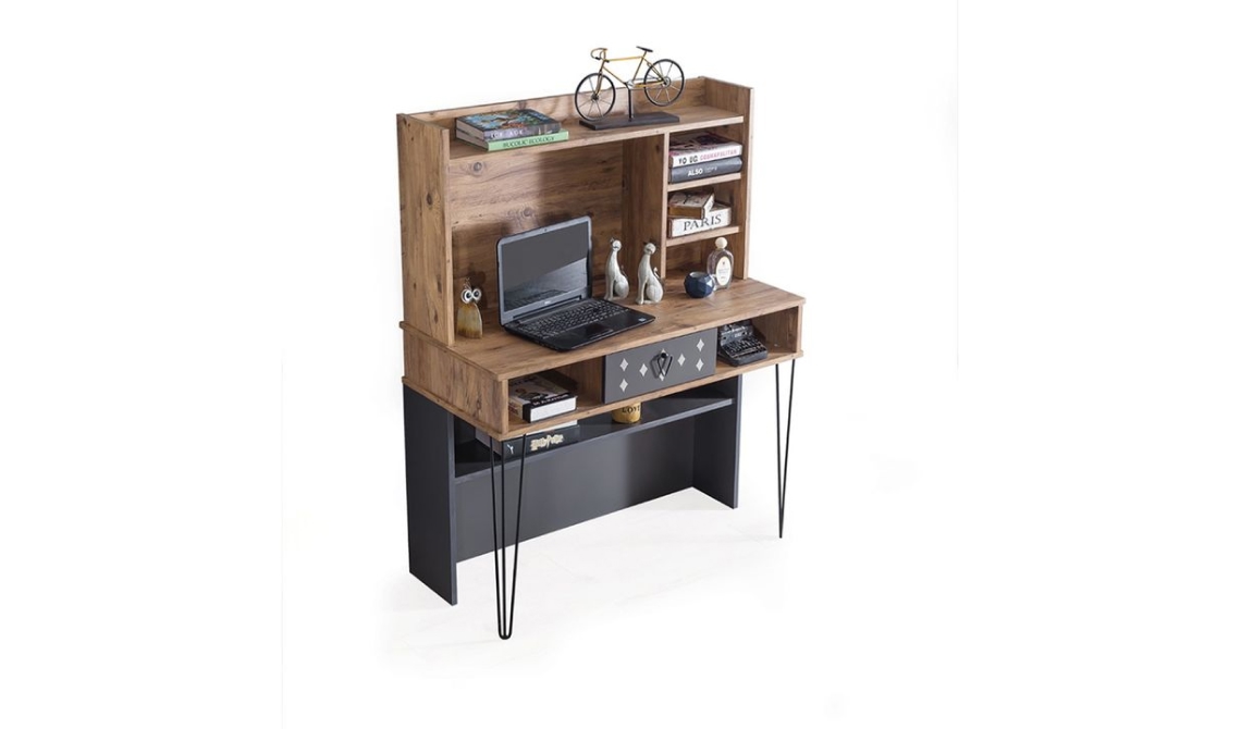 Lotus çalışma masası, geniş yüzeyi ve fonksiyonel raflarıyla ders çalışma ve günlük kullanım için düzenli ve pratik bir alan sunar.