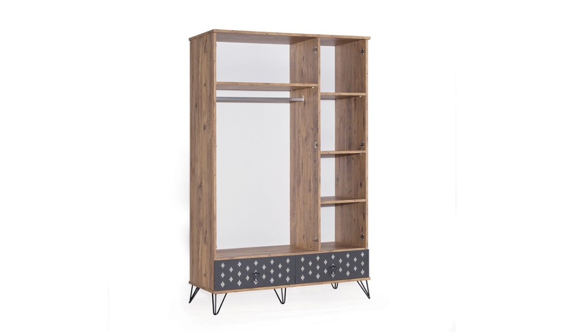 Lotus dolap, geniş iç hacmi ve kullanışlı raf askılık düzeniyle kıyafetlerinizi düzenli şekilde saklamanıza yardımcı olan şık bir depolama çözümüdür.