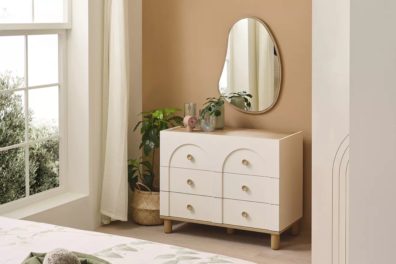 Organik formu ve sade tasarımıyla şifonyer üzerinde estetik ve kullanışlı bir tamamlayıcıdır.