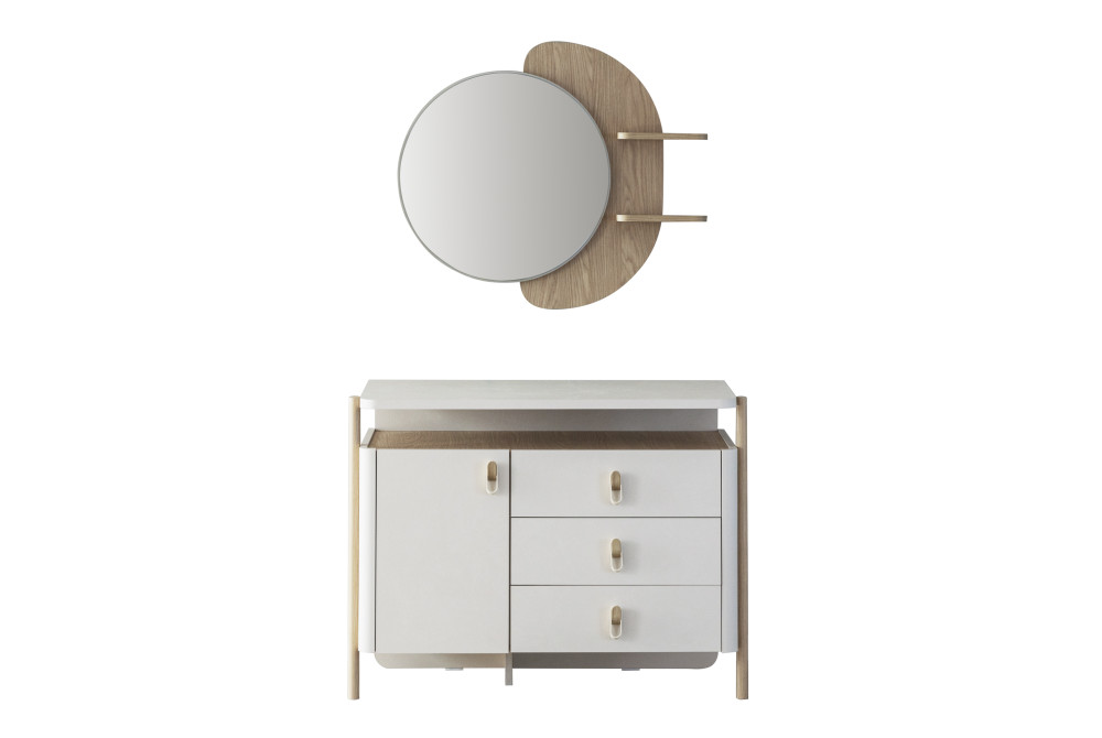 Çekmeceli yapısıyla günlük eşyaları toplar, odaya düzen ve şıklık katar.