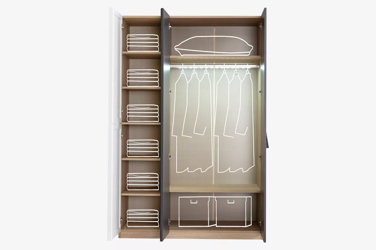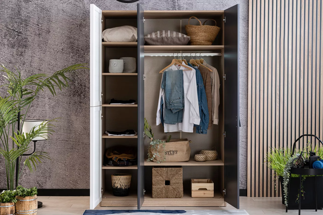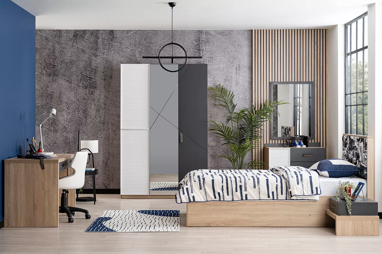 New City 3 Kapılı Dolap, kompakt ölçüleri ve kullanışlı iç düzeniyle genç odalarında düzenli ve pratik bir depolama alanı sunar.