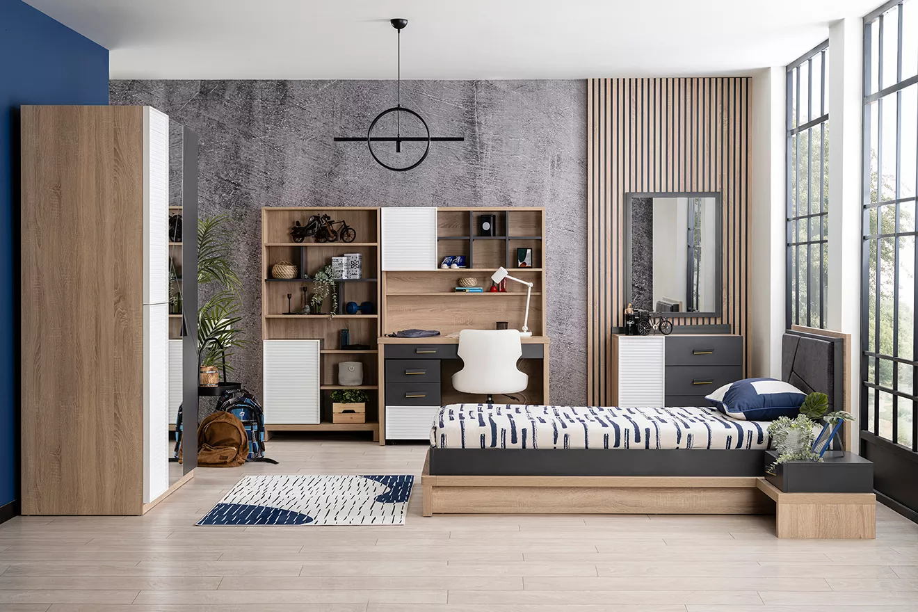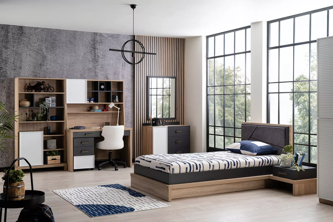 New City Karyola 100×200, sade tasarımı ve sağlam yapısıyla genç odalarında konforlu ve şık bir uyku alanı sunar.