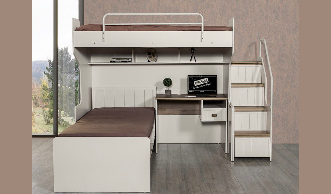 Modern ve sağlam tasarımıyla Pera Ranza, çocuk ve genç odalarında alanı verimli kullanmanızı sağlar. Güvenli yapısı ve fonksiyonel formu sayesinde konforlu ve uzun ömürlü bir kullanım sunar.