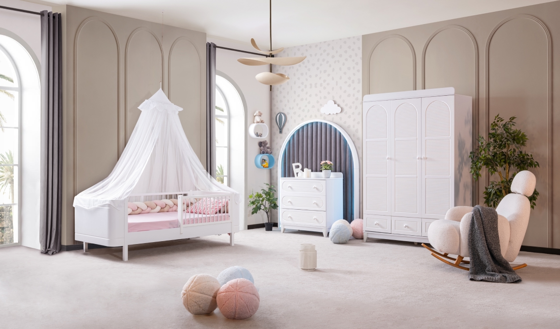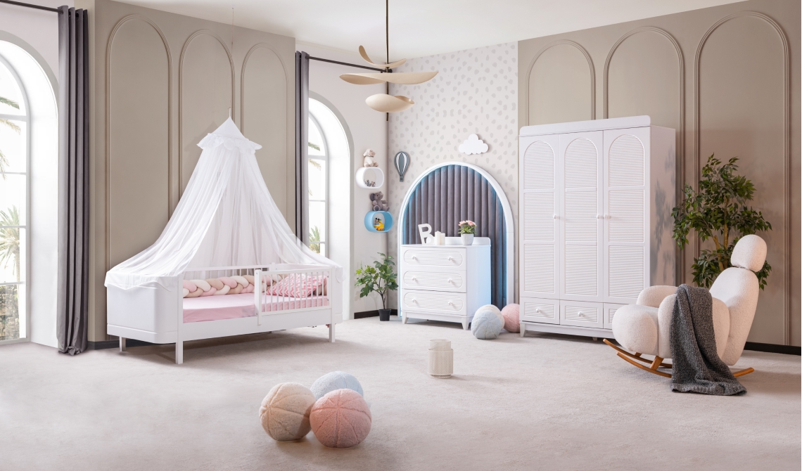 Perla beyaz set, sade beyaz tasarımı ve uyumlu modülleriyle odanızda şık ve düzenli bir yaşam alanı sunar.