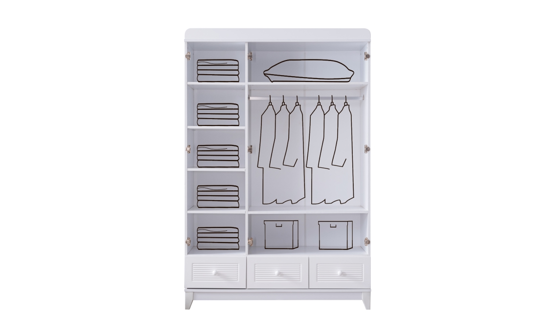Perla dolap, sade tasarımı ve kullanışlı iç hacmiyle kıyafetlerinizi düzenli şekilde saklamanızı sağlayan şık bir gardırop çözümüdür.