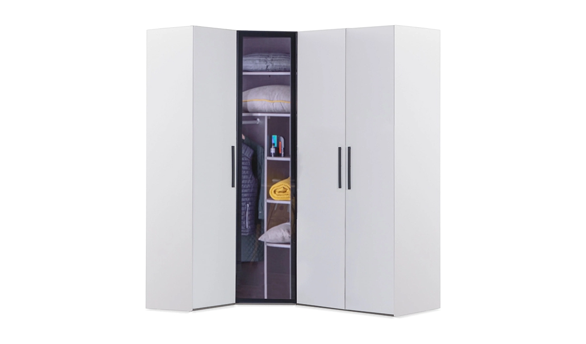 Puzzle Atlas White 4 Kapılı Köşe Dolap 832, köşe alanları verimli kullanan tasarımıyla maksimum depolama alanı sunar. Beyaz renkli modern görünümü ve kullanışlı iç düzeniyle genç odaları ve ferah yaşam alanlarına uyum sağlar.