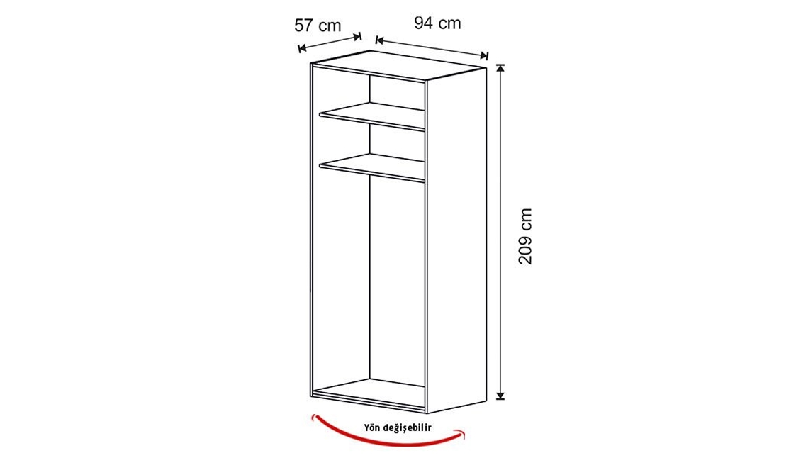 | 2 Kapılı Dolap | 94 cm | 57 cm | 209 cm |