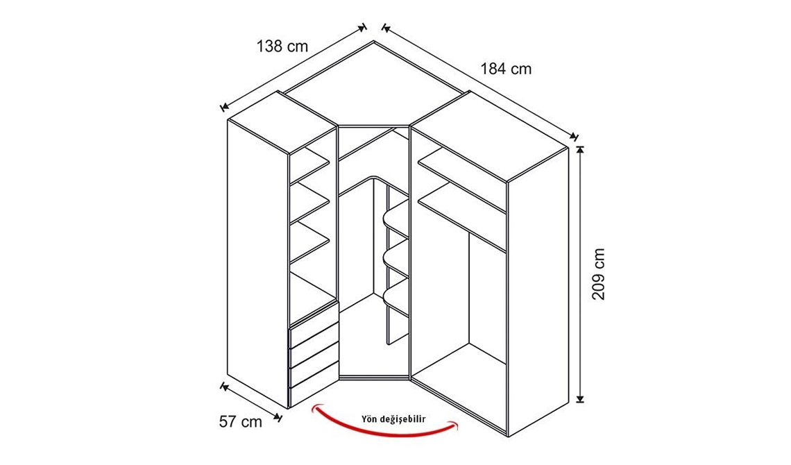 | 4 Kapılı Köşe Dolap | 184 cm | 138 cm | 209 cm |