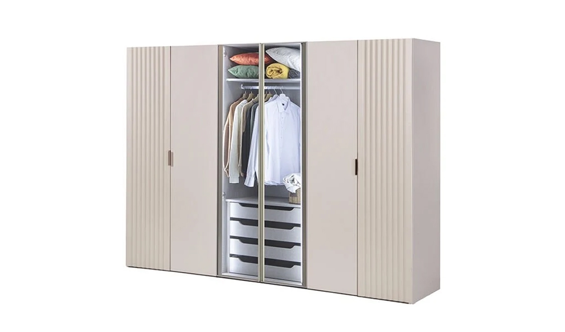 Puzzle Pera 6 Kapılı Dolap + 2K İç Çekmece 609 geniş iç hacmi ve fonksiyonel çekmece sistemiyle düzenli ve kullanışlı bir depolama alanı sunar