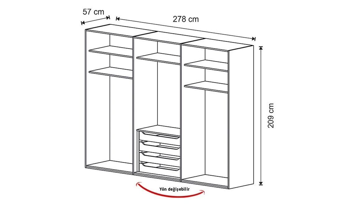 | 2K İç Çekmece | 6 Kapılı Dolap | 278 cm | 57 cm | 209 cm |