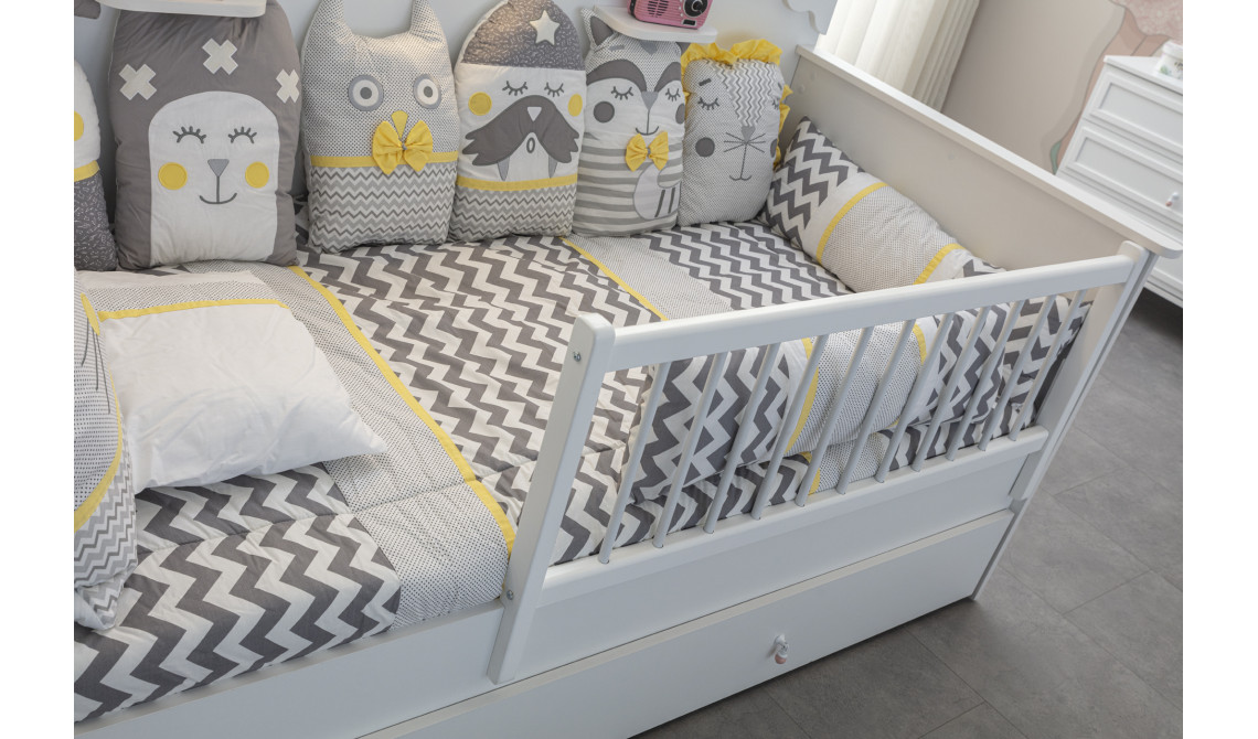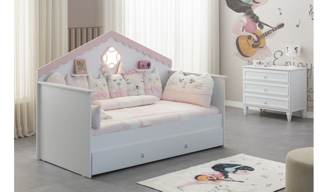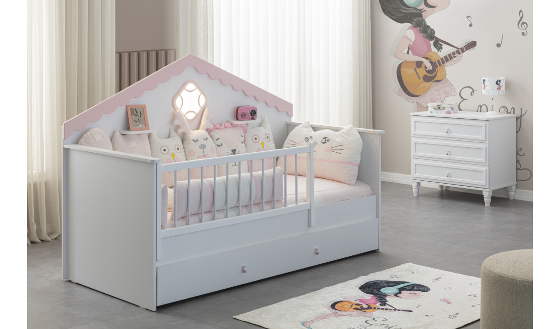 Alçak ve erişilebilir yapısıyla Montessori yaklaşımını destekleyen konforlu bir uyku alanı sunar.