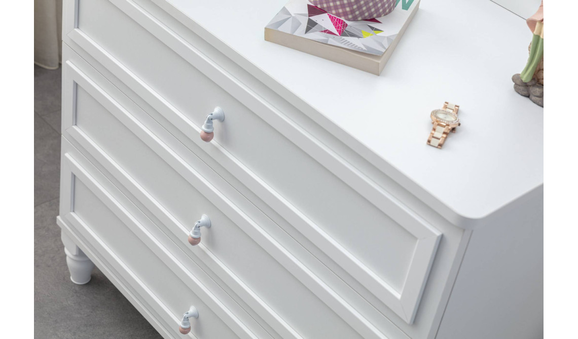 Yatak odası dekorasyonunuza asil bir dokunuş katarken, depolama ihtiyacınızı zarafetle karşılayan Royal Şifonyer, klasik tasarımın en güzel örneklerinden biridir. Oymalı detayları, şık kulpları ve gösterişli yapısıyla odanızın estetiğini zirveye taşır. Geniş çekmeceleri eşyalarınız için bolca alan sunarken, fonksiyonelliği lüks ve göz alıcı bir tasarımla buluşturur.