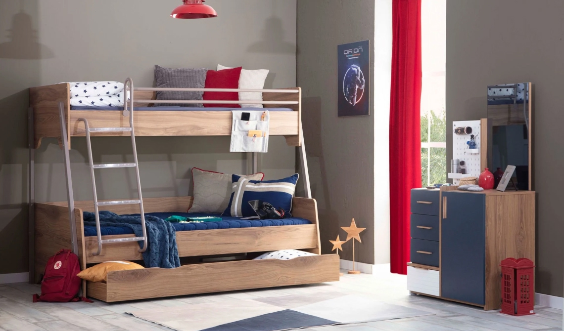 T.Ü. geniş ranza, yer tasarrufu sağlar ve odanıza fonksiyonel kullanım ile modern görünüm kazandırır.