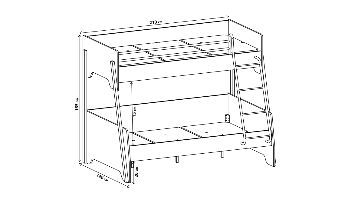 T.Ü. Geniş Ranza (Zebrano), sağlam yapısı ve geniş ölçüleriyle çocuk ve genç odalarında güvenli ve konforlu bir kullanım sunar.