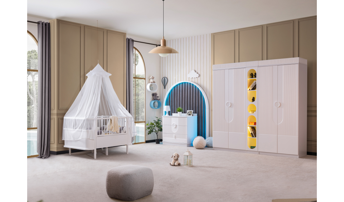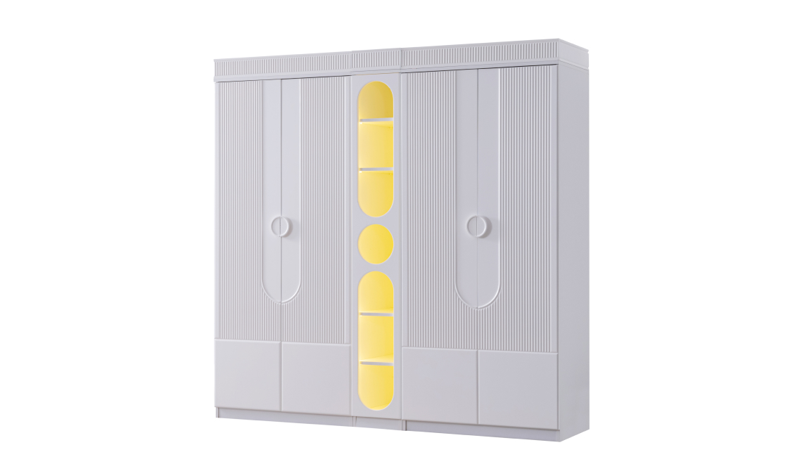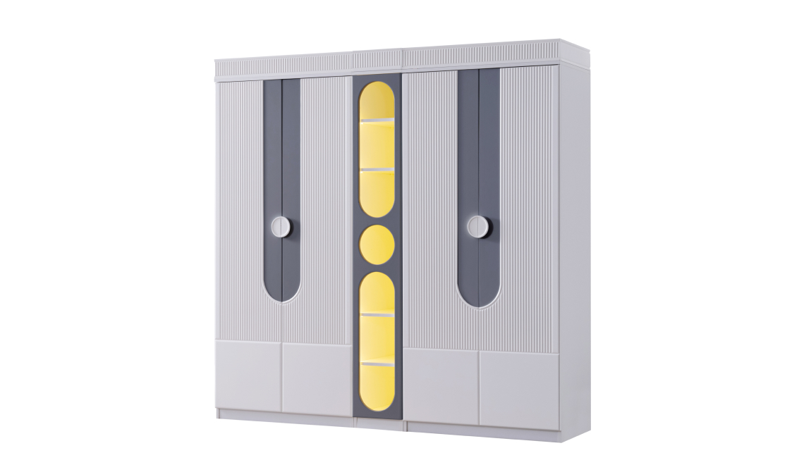 Modern tasarımı ve entegre LED aydınlatmasıyla Vira 4 Kapaklı Dolap, hem şık hem kullanışlı bir depolama alanı sunar. Geniş iç hacmi sayesinde eşyalarınızı düzenli tutarken, ışıklı yapısı odanıza estetik bir atmosfer katar.