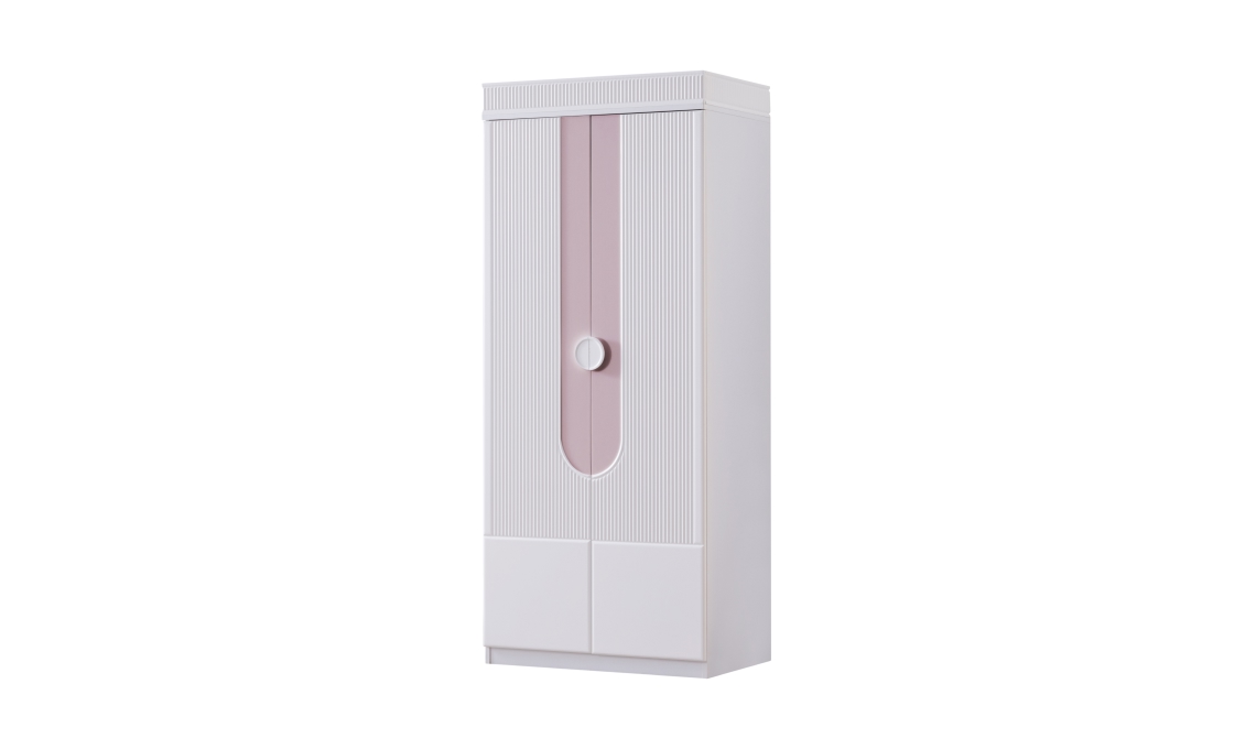 Vira pembe 2 kapılı dolap, kompakt yapısı ve kullanışlı iç düzeniyle çocuk ve genç odaları için şık ve pratik bir depolama çözümü sunar.