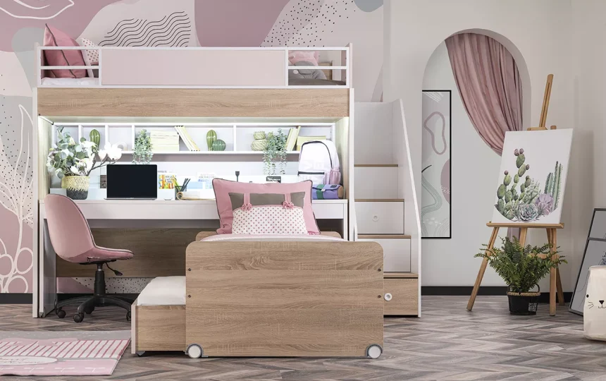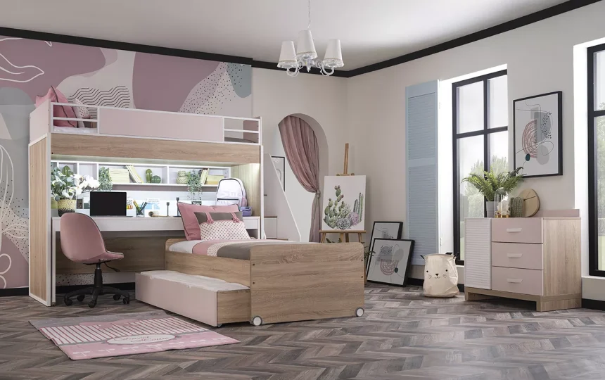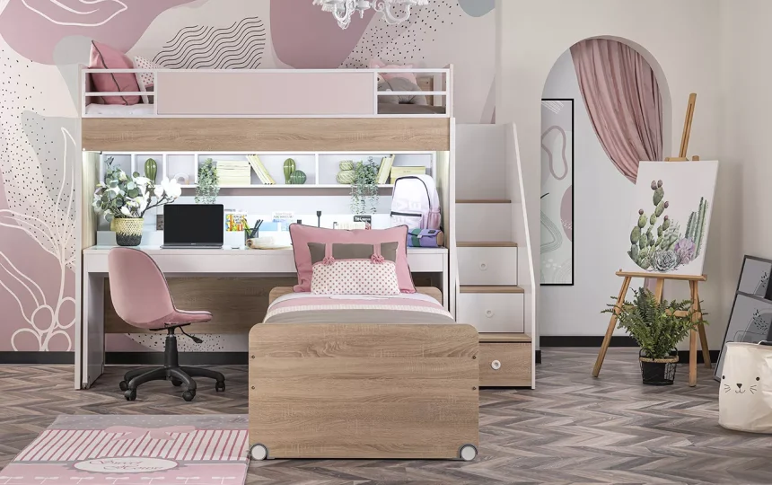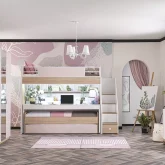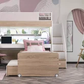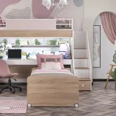 Angel City ranza, modern ve işlevsel tasarımıyla çocuk odalarında dar alanları kullanışlı hale getiriyor. Çekmeceli ve basamaklı merdiveni, depolama alanı olarak kullanılabiliyor ve odada yerden tasarruf sağlıyor. 3 ölçülü yatağı ile farklı yaş gruplarına uygun seçenekler sunuyor.