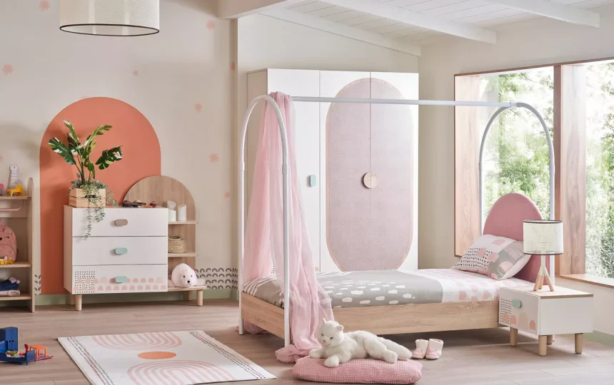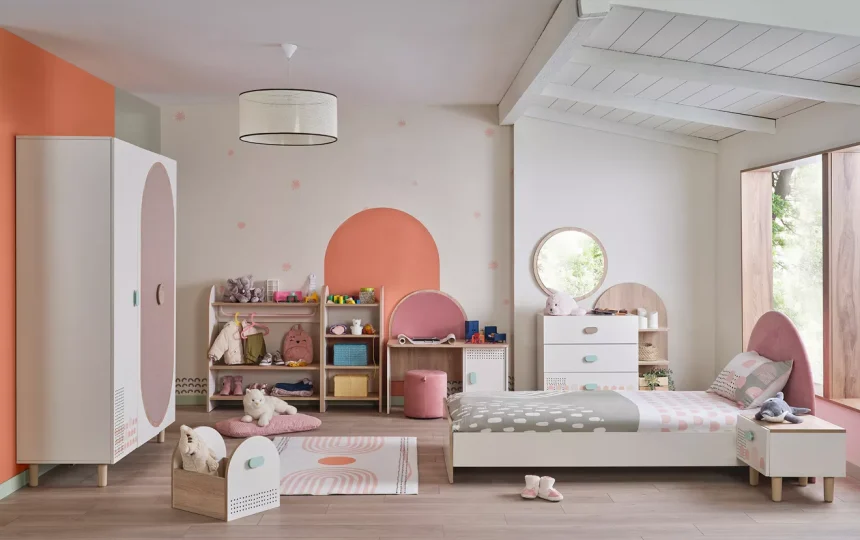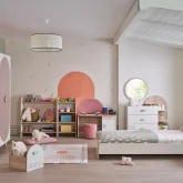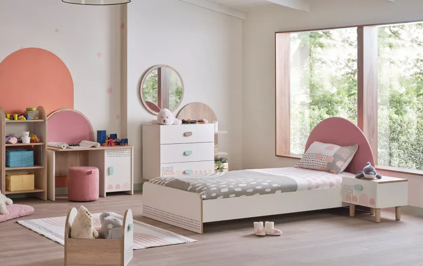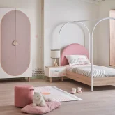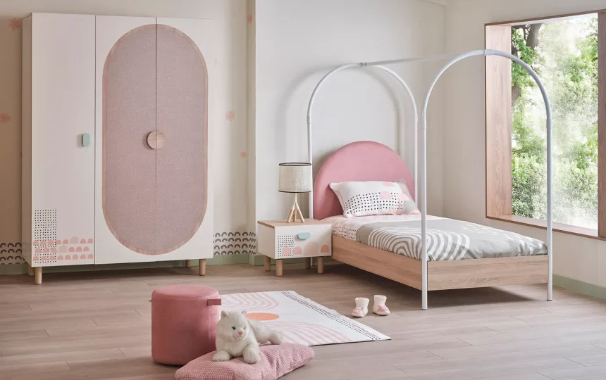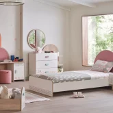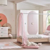 Bonie çocuk odası. Sade tasarımı ve pembe tonlarıyla öne çıkan bir koleksiyondur. Yerden yüksek ayakları, geniş iç hacimli dolapları ve çekmeceleri, kullanışlı rafları ve şık detayları ile hem estetik hem de fonksiyonel bir seçenek sunar.