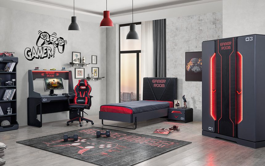 Gamer Genç Odası, dijital dünyaların şampiyonları için tasarlandı. Her parça, oyun performansını en üst seviyeye çıkarmak ve zafer için gereken konforu sunmak üzere ergonomik olarak dizayn edilmiştir.