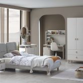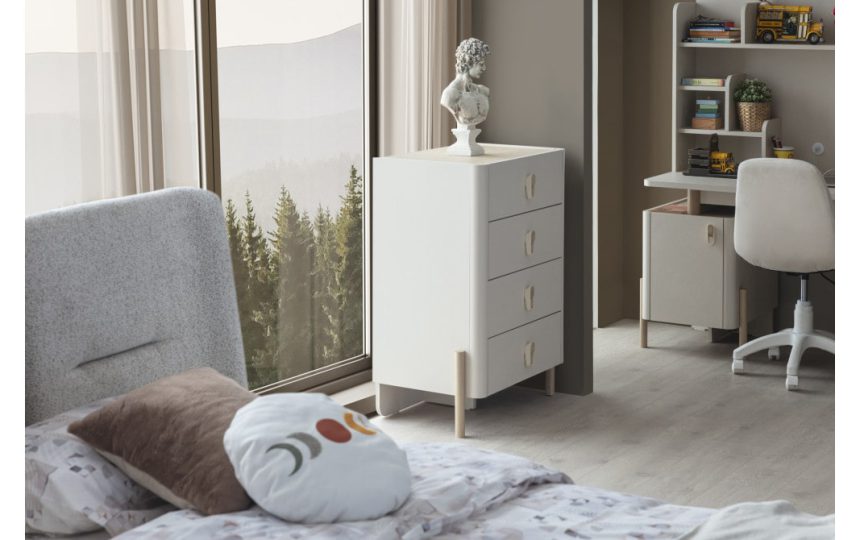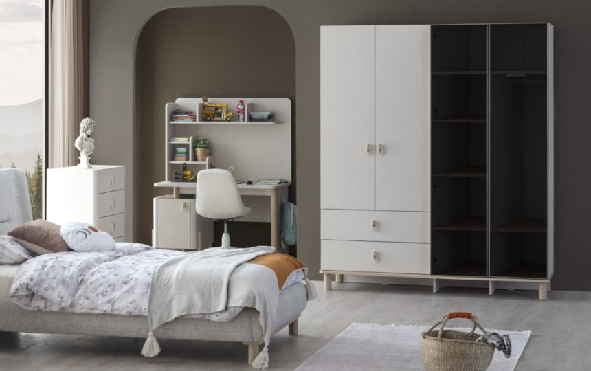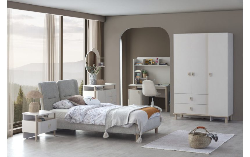 Fonksiyonel tasarımı ve modern detaylarıyla bu genç odası, gençlerin hem rahatça dinlenebileceği hem de ders ve hobileri için ideal bir yaşam alanı sunar.