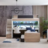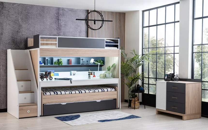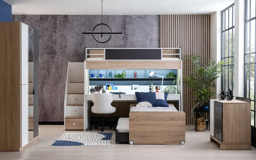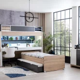 New City Ranza, hem estetik hem de fonksiyonel bir tasarıma sahip olan ranza modellerinden biridir. Yatak odası ve çalışma alanı ihtiyaçlarınızı karşılayacak bir çözüm sunan bu ranza, çekmeceli ve basamaklı merdiveni depolama alanı olarak kullanılmaktadır.