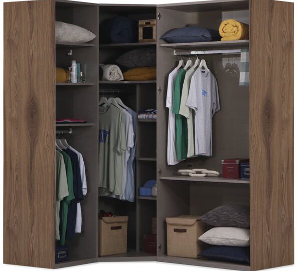 Geniş depolama alanı ve modern tasarımıyla odanıza şıklık katan kullanışlı köşe dolap.
