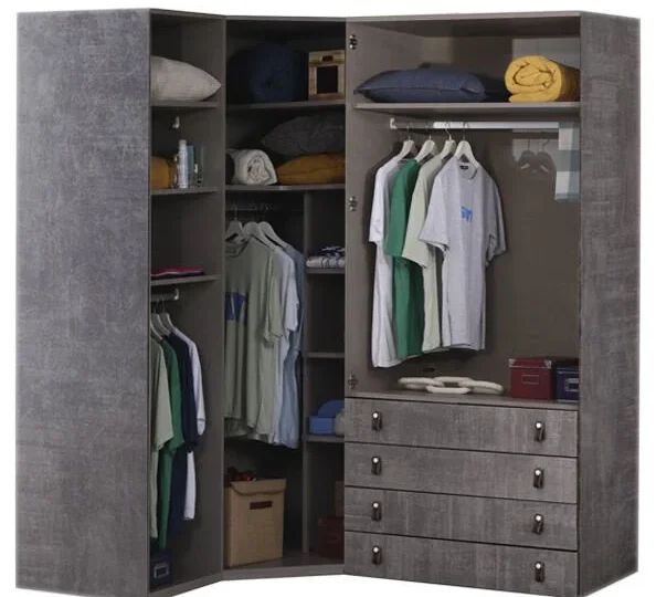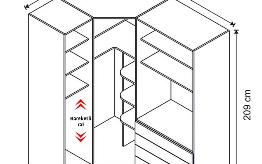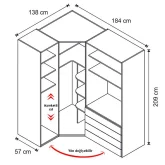 Modern tasarımı ve geniş iç hacmiyle odanıza şıklık katan kullanışlı köşe dolap.