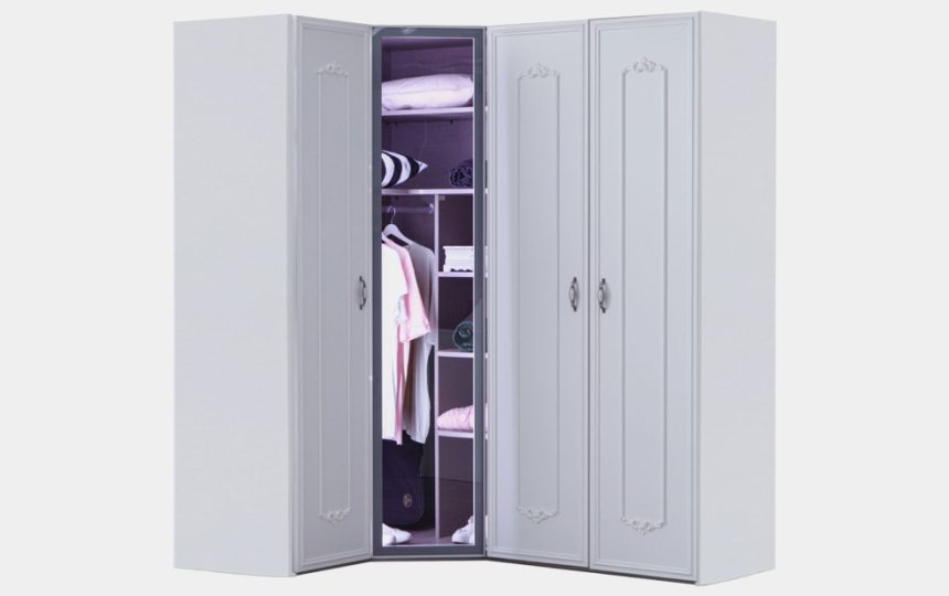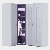 Modern tasarımı ve kullanışlı depolama alanıyla odanıza şıklık katan köşe dolap.