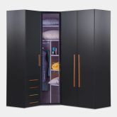 Modern tasarımı ve geniş iç hacmiyle odanıza şıklık katan kullanışlı köşe dolap.