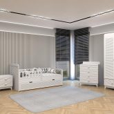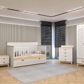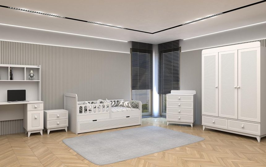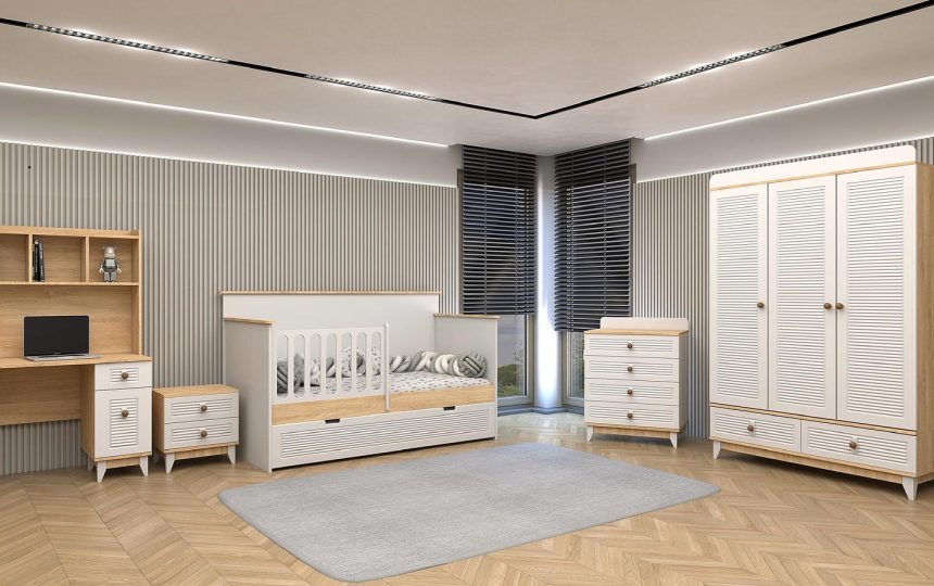 Sedir Bebek Odası, doğal dokuların sıcaklığıyla huzurlu bir atmosfer sunar. Modern çizgilerle tasarlanan bu takım, bebeğinizin güvenliği ve konforu düşünülerek üretilmiştir